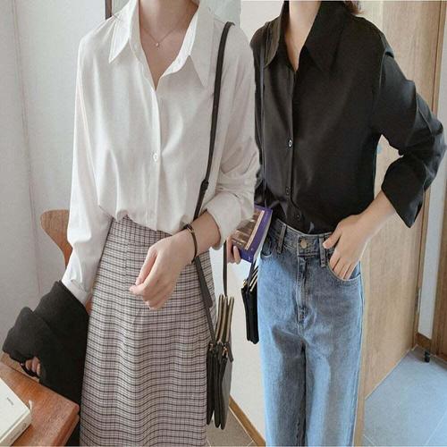 [셀럽하우스]여성 XKOR1338 화이트 블랙 정장 캐주얼 스타일 심플 블라우스