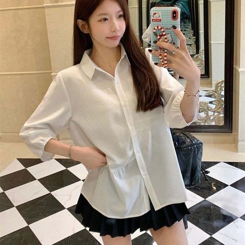 [셀럽하우스]언발 LFEZ3047 셔츠 셔링 여자 7부 블라우스