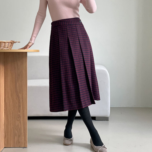 [옷자락] 여자 연말룩 플리츠 체크치마 빅사이즈 랩 롱스커트