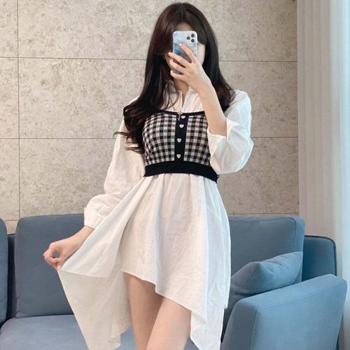 [셀럽하우스]여성 WUNM7556 우아한 체크 단추나시티 연말 파티 데이트룩