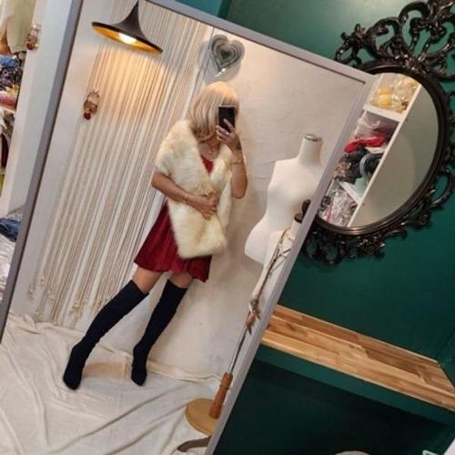 [미라클세븐]여성 겨울 시즌 연말 파티용 스트라이프 인조밍크 조끼