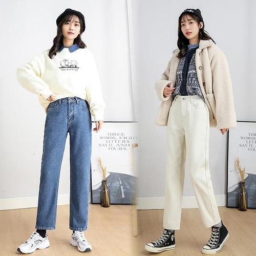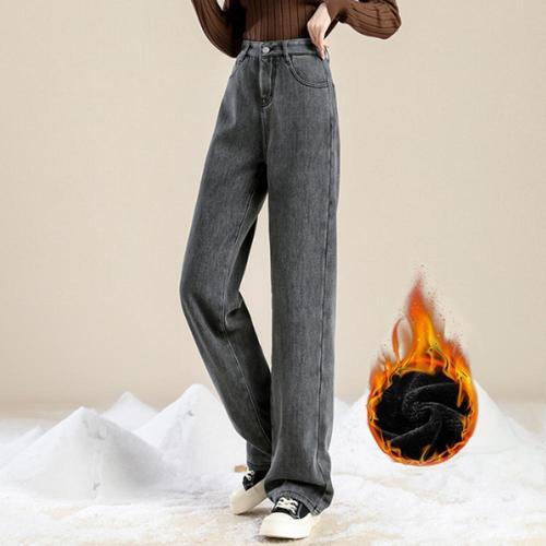 부엉구구 OW0004A 여성 겨울 캐주얼 기모 일자 루즈핏 데님 팬츠