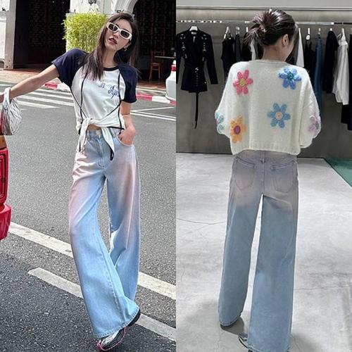 위드후이린 여성용 밑단포인트 와이드 일자 데님 팬츠