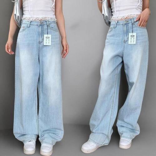 [신상오픈런]여성 저허리 맥시 와이드 워싱 연청 가을 청바지