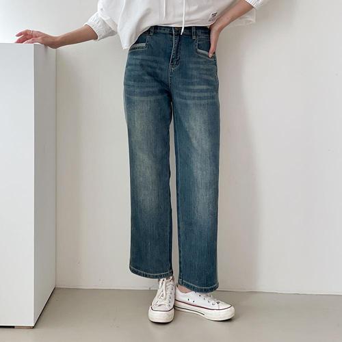 [다잇템]여자 FW 워싱 통팬츠 H라인 옆배색 청바지