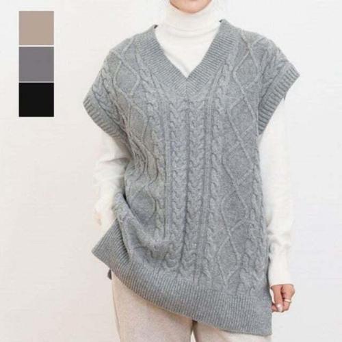 [엄지척]여성 옆트임 루즈핏 라운드넥 단정한 니트 조끼_20359338_667501