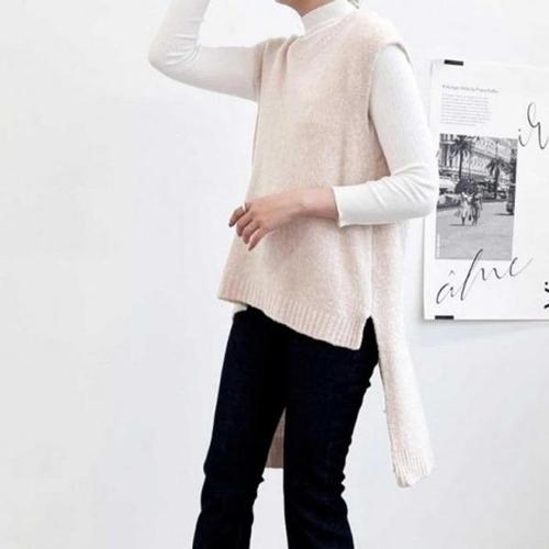[엄지척]언발 베이직 라운드넥 옆트임 롱니트 조끼 레이어드룩_20359562_667501