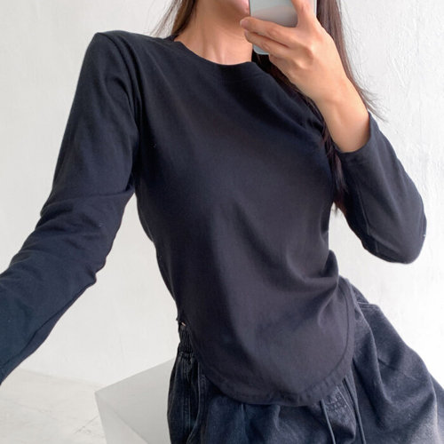 1+1 여성 옆트임 라운드 긴팔티 루즈핏 캐주얼 롱티셔츠