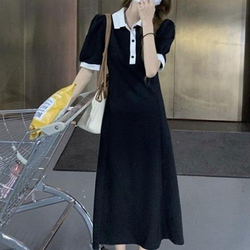[엄지척]데일리 여자 여름 예쁜 카라배색 반팔 롱 원피스 치마_19872656_667501