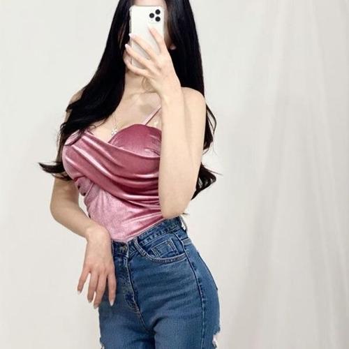 [엄지척]여성 벨벳 리본꼬임 끈조절 크롭 나시 예쁜 크롭티_19558225_667501