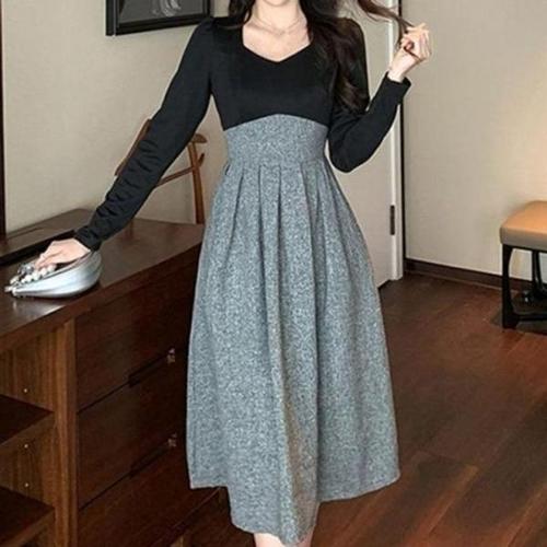 [엄지척]예쁜핏 그레이 블랙 배색 원피스 봄 가을 나들이룩 슬_19804344_667501