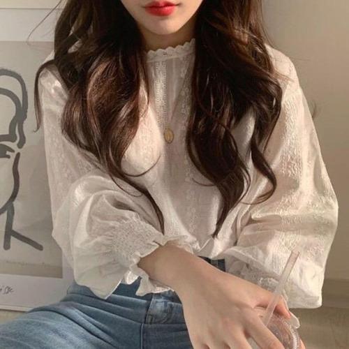 [엄지척]레이스 자수 화이트 긴팔 블라우스 캐주얼 예쁜_19660000_667501