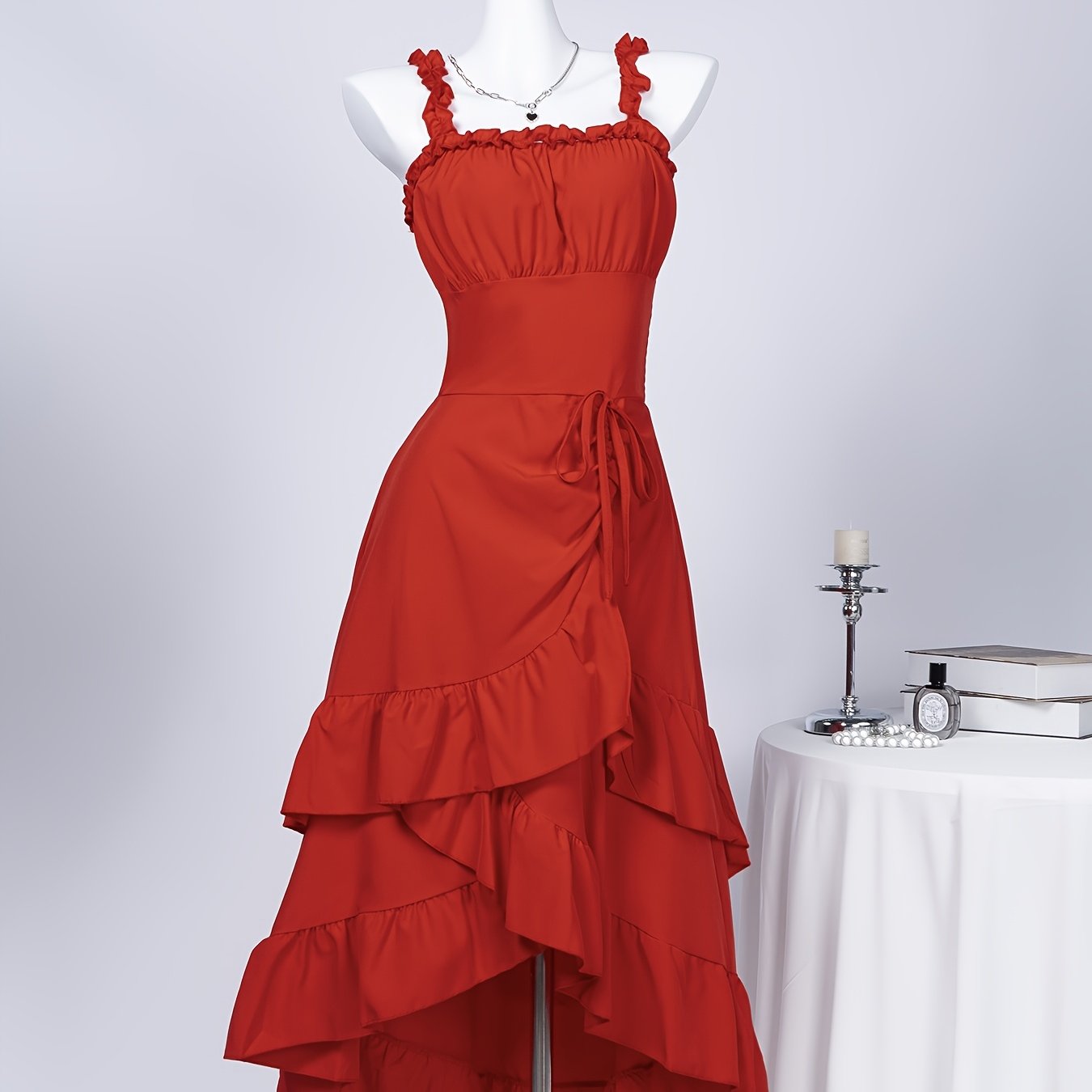 TEMU 여성용 패션 우아한 솔리드 컬러 스퀘어넥 민소매 A라인 러플 밑단 롱드레스