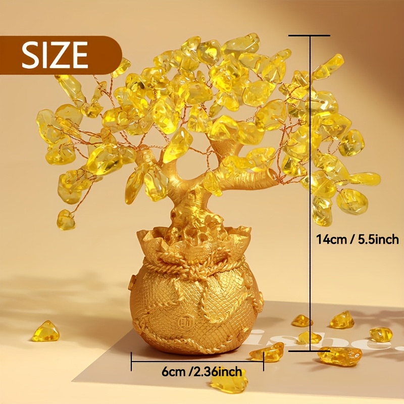 TEMU 재물 & 행운을 위한 노란색 풍수 돈나무 | 로즈-골드 와이어에 90개의 보석, 차크라 치유 홈 데코 & 선물, 5.5인치
