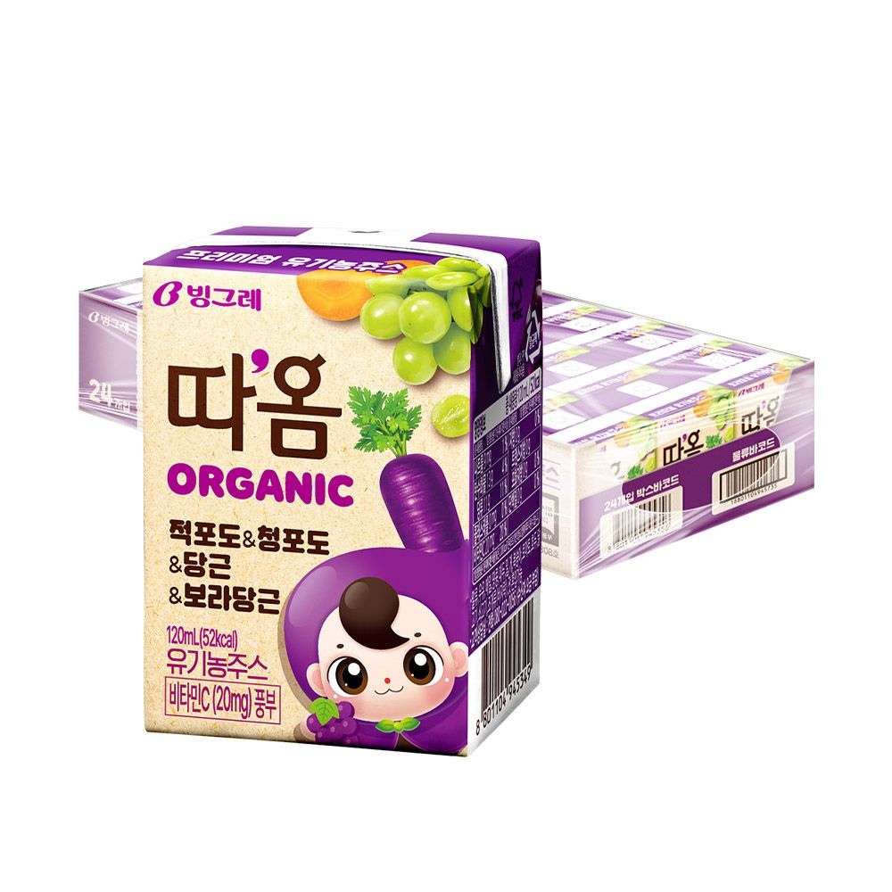 따옴 ORGANIC 적포도 & 청포도 & 당근 & 보라당근 120ml*24팩