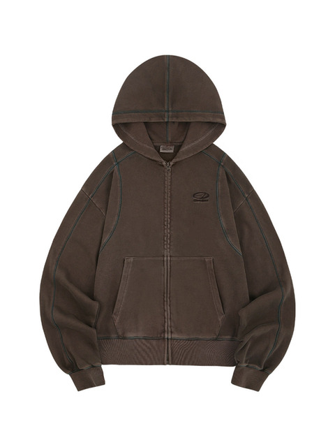 [오드스튜디오] 피그먼트 커버 스티치 후드집업 - BROWN