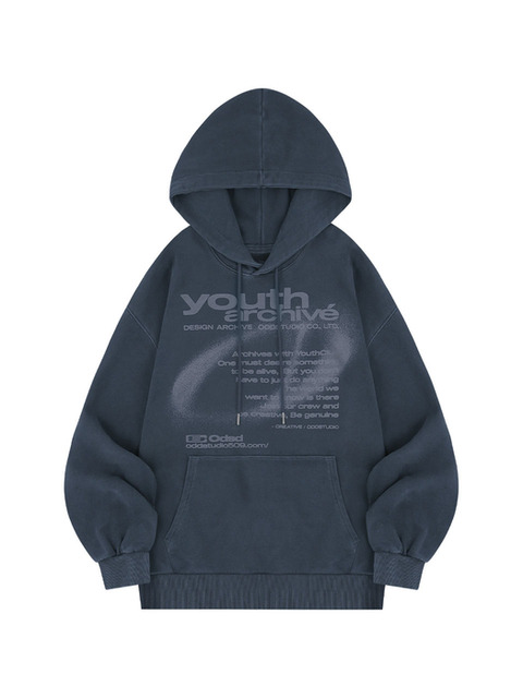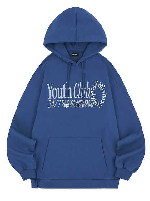 [오드스튜디오] 유스클럽 타이포 그래픽 오버핏 후드 - INDIGO
