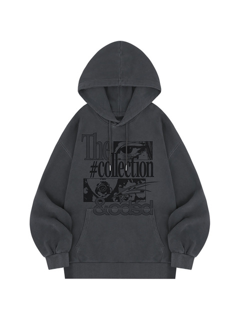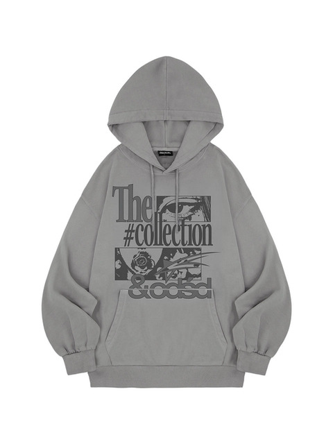 [오드스튜디오] 그런지 피그먼트 그래픽 오버핏 후드 - CHARCOAL