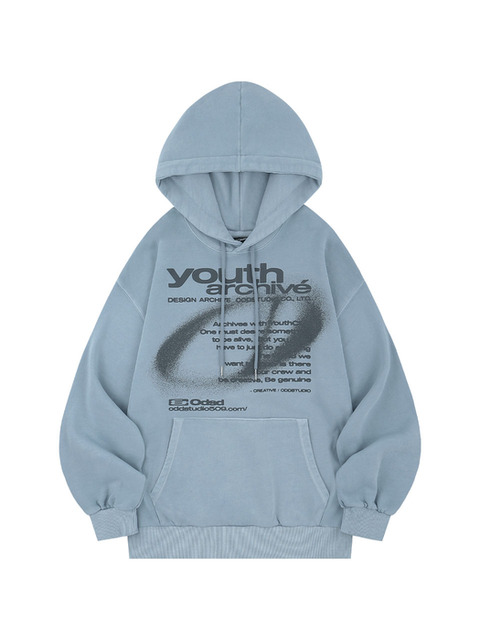 [오드스튜디오] 유스아카이브 피그먼트 심볼 오버핏 후드 - ASH SKY
