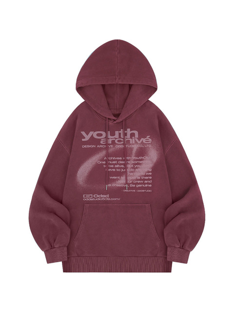 [오드스튜디오] 유스아카이브 피그먼트 심볼 오버핏 후드 - DEEP PLUM