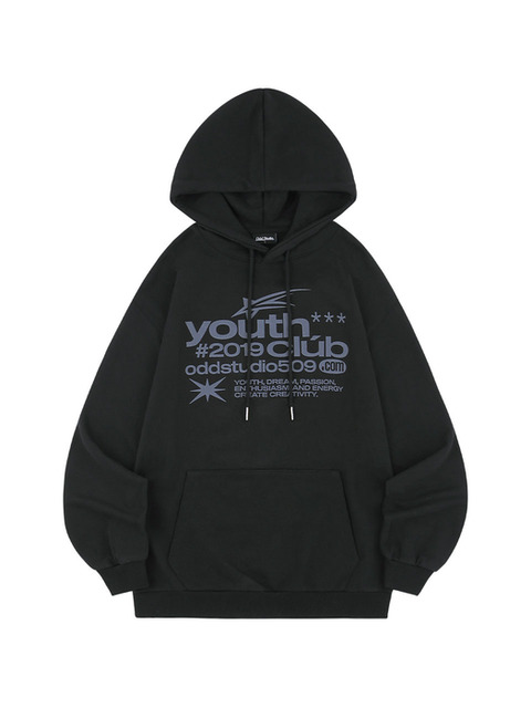 [오드스튜디오] 유스클럽 타이포 그래픽 오버핏 후드 - BLACK