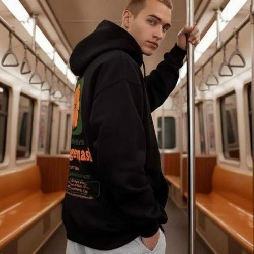 [에이치플러스몰]오렌지 백 프린팅 기모 남성 3컬러 후드티