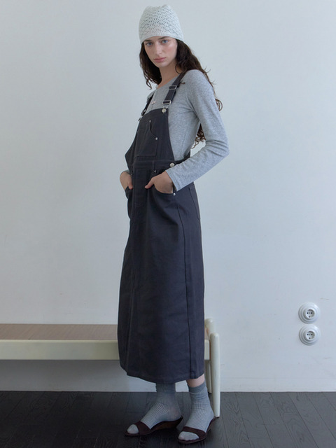 [엘씨브이] 코튼 오버롤 원피스_차콜