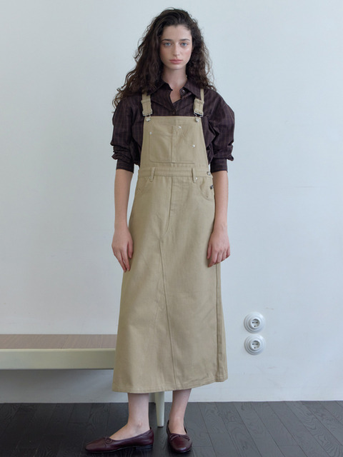 [로아드로아]어반 오버롤 롱 원피스 (카키)