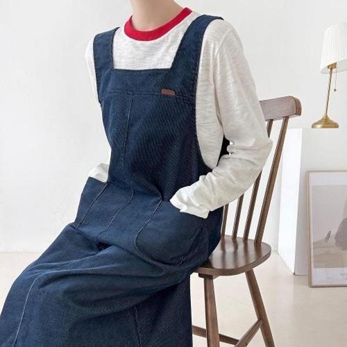 [옷자락]여자 골덴 투포켓 스퀘어넥 양트임 오버롤 롱원피스