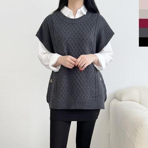 [엄지척]3컬러 옆버튼 에어리라운드넥 여자 니트조끼 루즈핏_19680151_667501