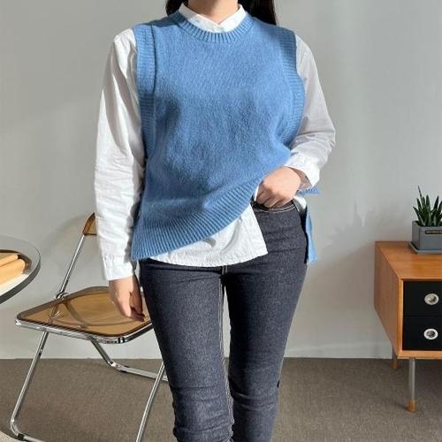 [엄지척]여성 레이어드 V넥 옆트임 오버핏 니트 조끼 베스트_19680504_667501