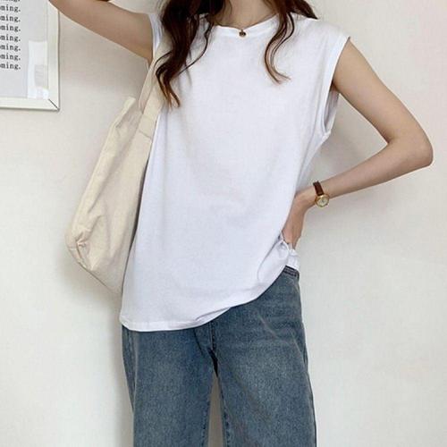 [에이치플러스몰]루즈핏 썸머 캐주얼 민소매 순면 필수템 나시 티셔츠