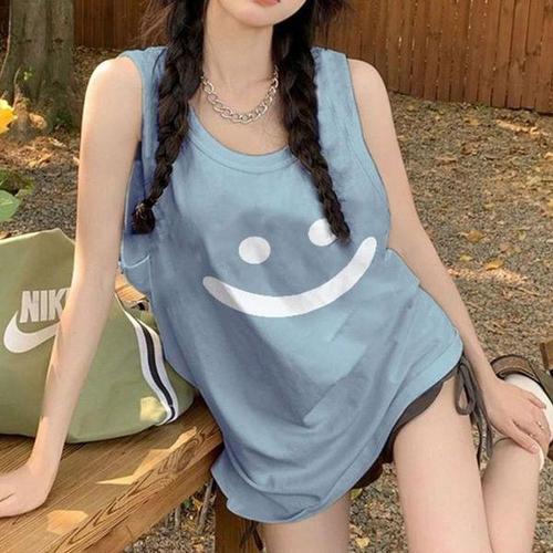 여성용 여름용 루즈핏 민소매 캐주얼 나시 티셔츠 WFKOL1J