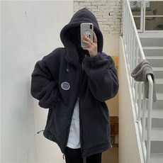 ANYOU 여성 후리스 울라이크 맨투맨 여자 루즈핏 후드 자수 후리스자켓