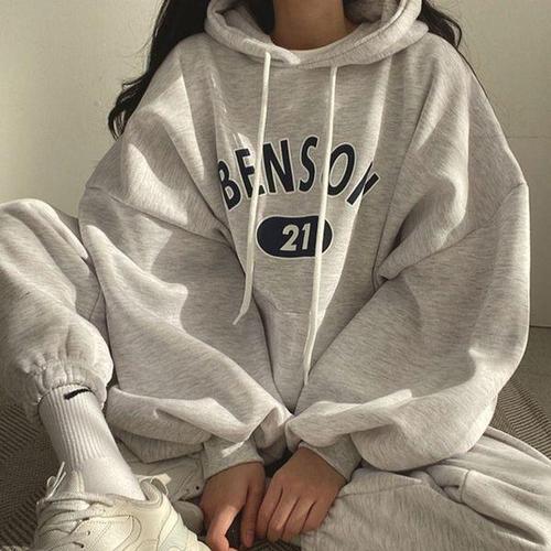 [에이치플러스몰]여성 오버핏 후드 트레이닝 세트 데일리 캐주얼 셋업