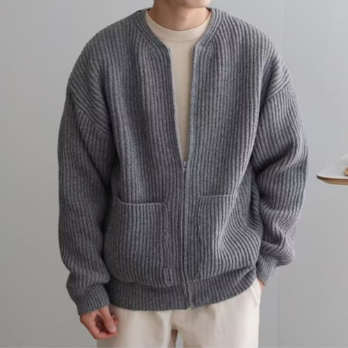 남성 니트가디건 집업 라운드넥 노카라 3컬러 루즈핏 아우터 WFKO1Y3