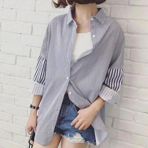 여성 캐주얼 루즈핏 스트라이프 셔츠 남방 블라우스