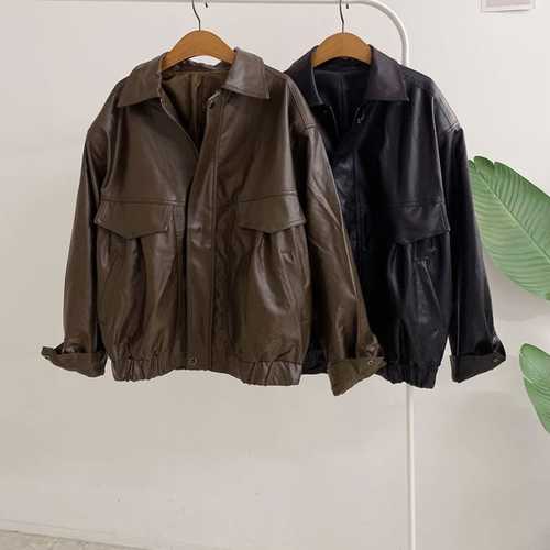 와칸다 여자 여친 브라운 가을 빈티지 재킷 가죽 인조 코트 여항풍 루즈핏 라이더 자켓 KKE3