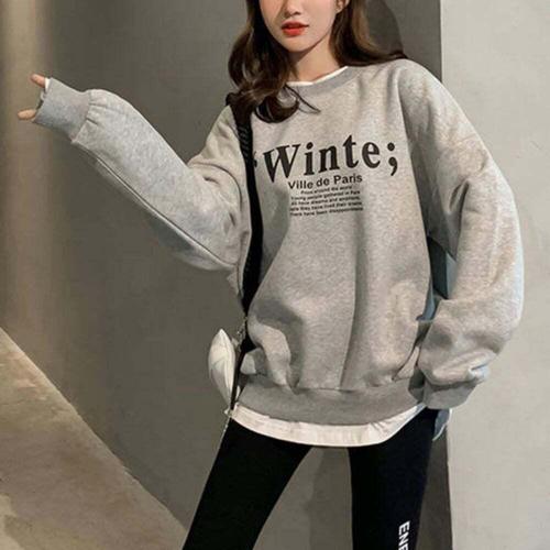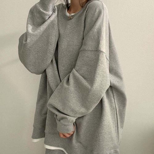 [셀럽하우스]Winte GYCN3302 레이어드 루즈핏 여성 여자 그레이 기모 맨투맨