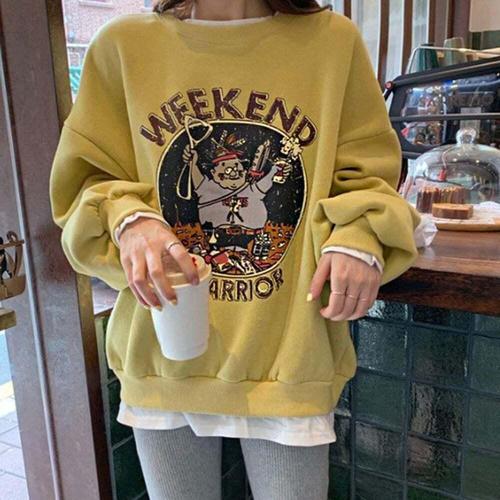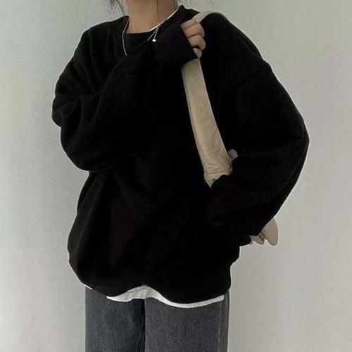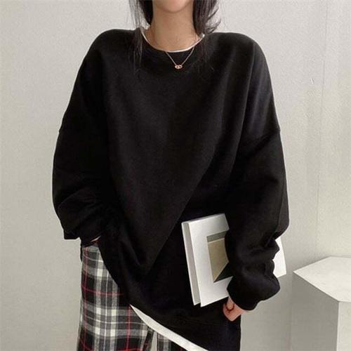 [셀럽하우스]여성 BDIY3024 맨투맨 루즈핏 기모 안감 편한 티셔츠 레이어드