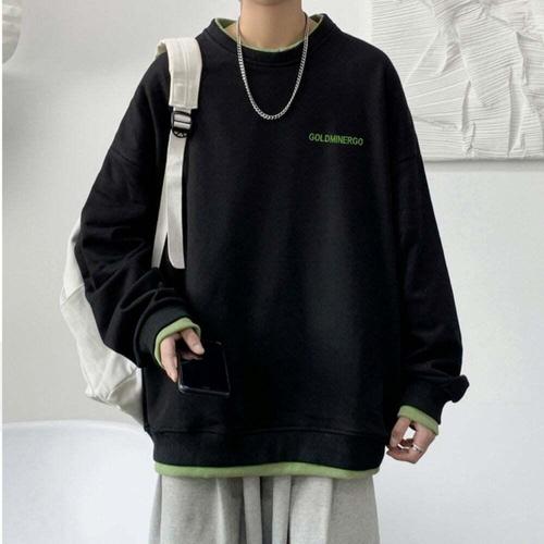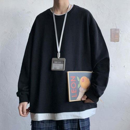 라운드 데일리 레이어드 스웨트셔츠 남성 맨투맨 티셔츠 오버핏 루즈핏 가을