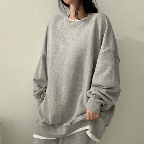 [셀럽하우스]2컬러 RIOR6970 여성 무지 레이어드 오버핏 맨투맨티