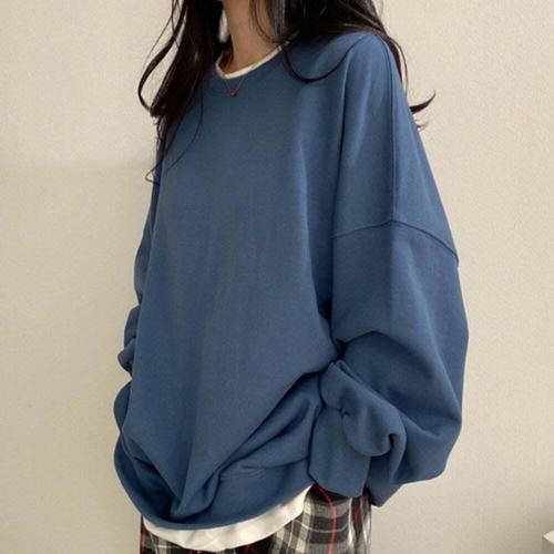 [셀럽하우스]여성 PQMI4049 루즈핏 무지 맨투맨 티셔츠 레이어드 스타일