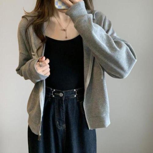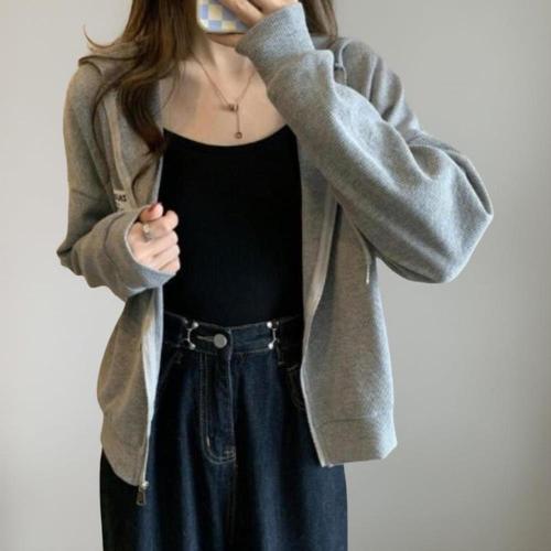 여성 루즈핏 후드니트 집업 가디건 봄가을겨울 아우터 무지 써클링 스타일 점퍼형