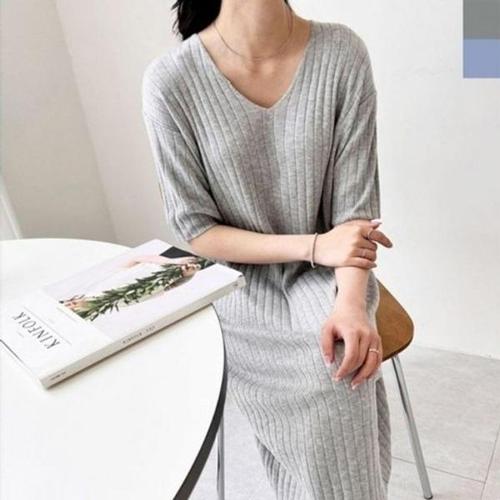 [엄지척]루즈핏원피스 반팔 브이넥 1P 루즈핏 니트 롱원피스_19861767_667501