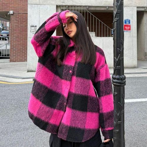 [유야]모헤어 도톰 체크 셔츠 자켓 남방 -NB0103H- 빅사이즈 루즈핏 여성 겨울