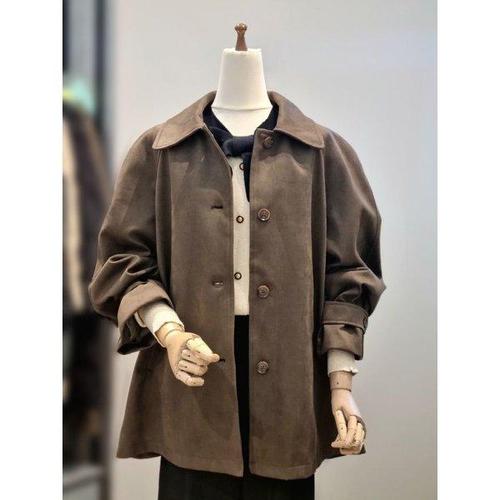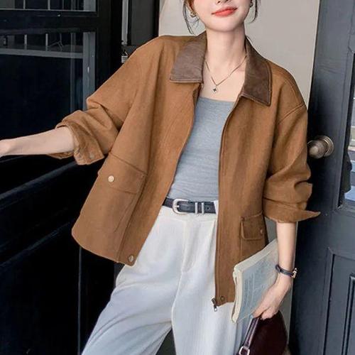 레트로 스웨이드 자켓 여성 루즈핏 캐주얼 코트 봄 가을 신상 스몰 사이즈 고급스러운 느낌 지퍼 포켓 폴리에스터 안감
