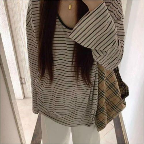 [OF49P443]여자 줄무늬 루즈핏 간절기 가을 긴팔티