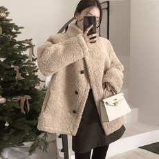 떳다그녀 소플리 뽀글이 덤블 오버핏 양털 스웨이드 안감 하이넥 겨울 데일리 무스탕 보아 퍼 자켓