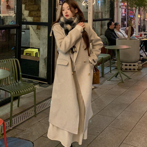 [모던스타일]여성 핸드메이드 울 루즈핏 카라 더블 롱 코트 아우터
